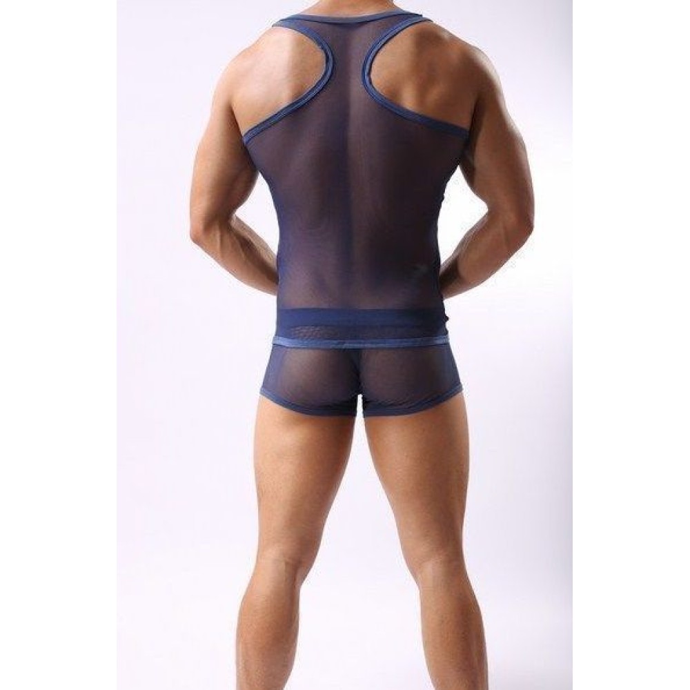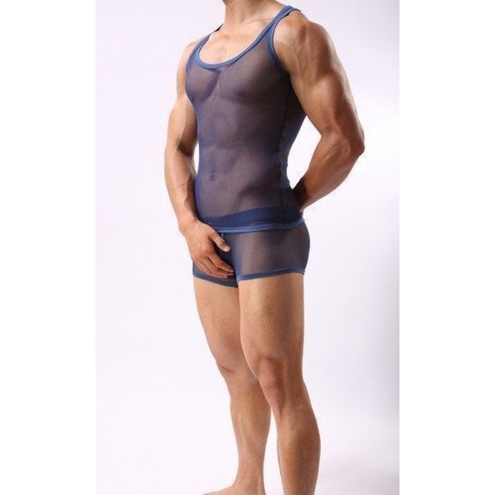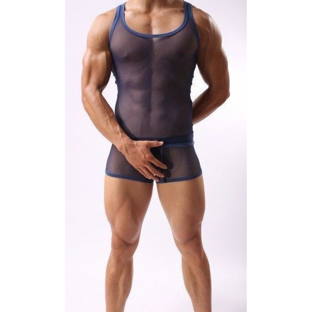 Соблазнительная эротическая одежда для настоящих мужчин! Эта полупрозрачная майка-борцовка синего цвета подчеркнет вашу мужественность и добавит страсти в интимные моменты.