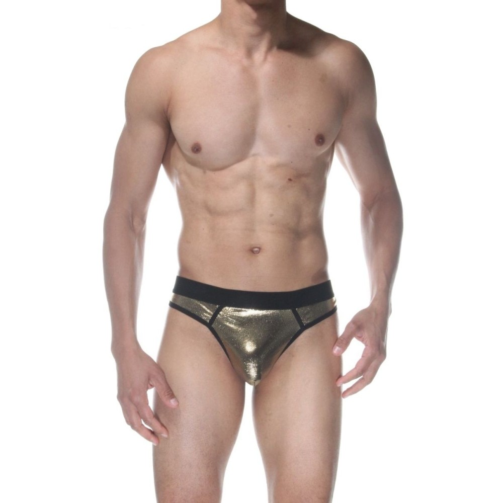 Технические характеристики Золотистые блестящие мужские трусы-стринги