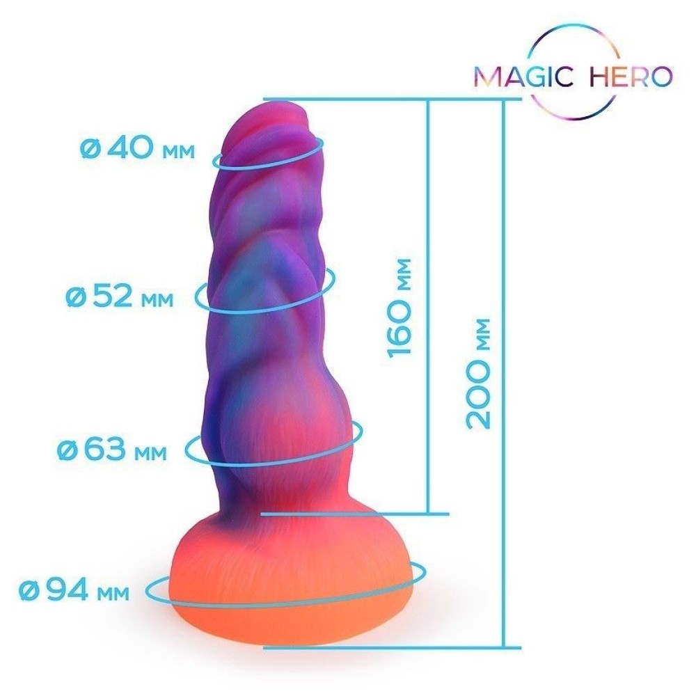 Светящийся в темноте фантазийный стимулятор 20 см из коллекции MAGIC HERO — это универсальная интим-игрушка для пар и одиночных практик. Выполненный из качественного силикона, стимулятор обеспечивает комфортную анальную и вагинальную стимуляцию. Необычное свечение в темноте добавит страсти в ваши игры, а оптимальные параметры (длина 20 см, диаметр 6,3 см) подходят для разнообразных сценариев. Упакован в стильную картонную коробку — идеальный вариант для подарка или личного использования.