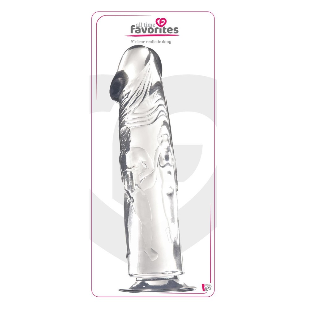 Прозрачный фаллоимитатор с фигурками на поверхности - 21,6 см.
