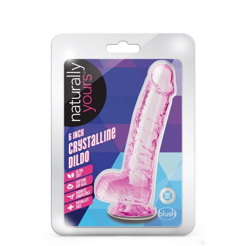 Розовый фаллоимитатор 6 Inch Crystalline Dildo. Гибкий ствол, пышная мошонка, присоска для фиксации на плоскости.