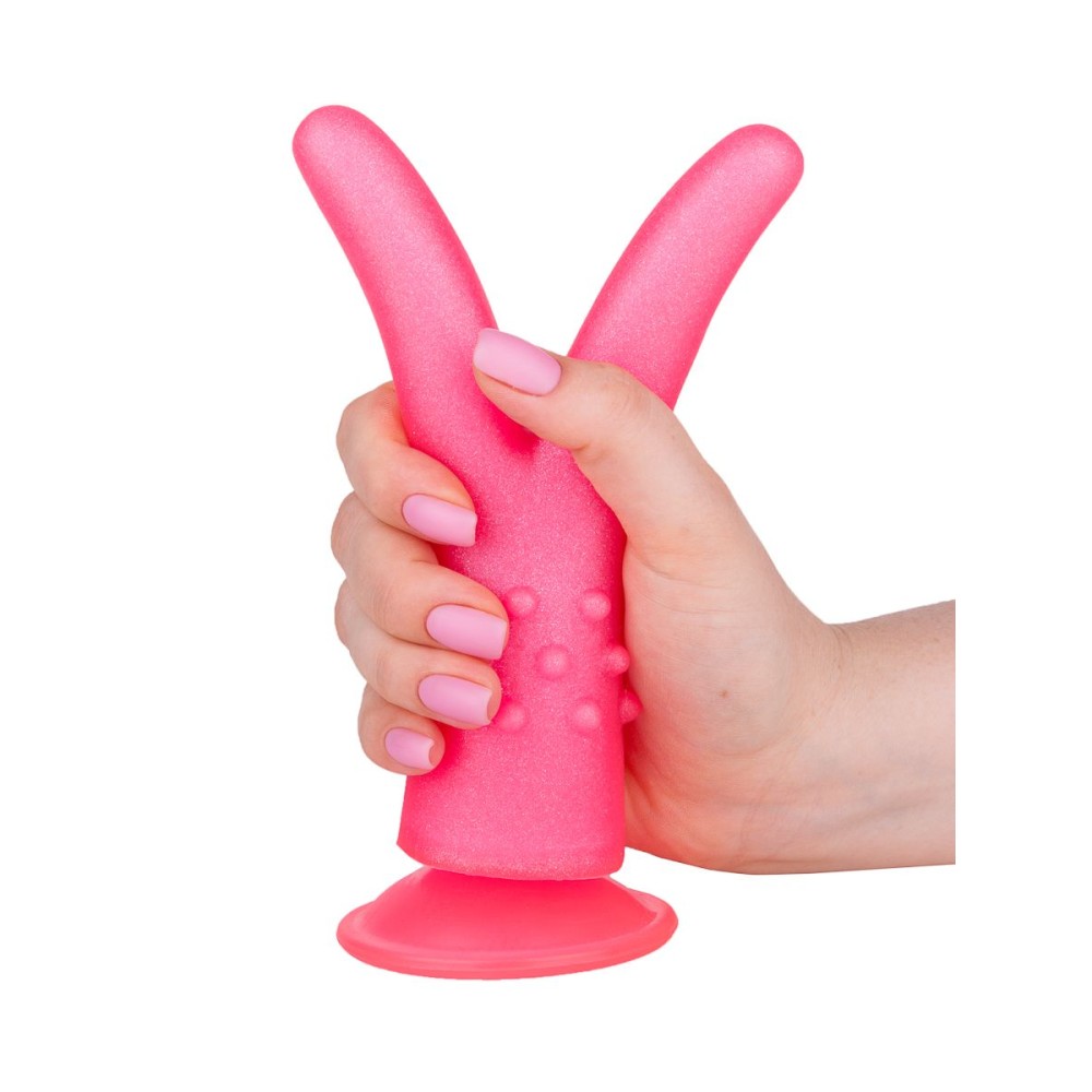 Идеальное решение для двойного удовольствия! Этот элегантный розовый стимулятор длиной 16 см создан специально для женщин, стремящихся к новым ощущениям. Раздвоенный кончик позволяет одновременно стимулировать клитор и точку G, усиливая вагинальное наслаждение. Дополнительная функция анальной стимуляции расширяет возможности для экспериментов.