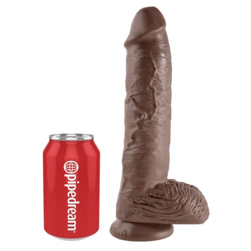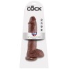 Большой коричневый фаллоимитатор с мошонкой 10 Cock with Balls на присоске - 25,4 см.
