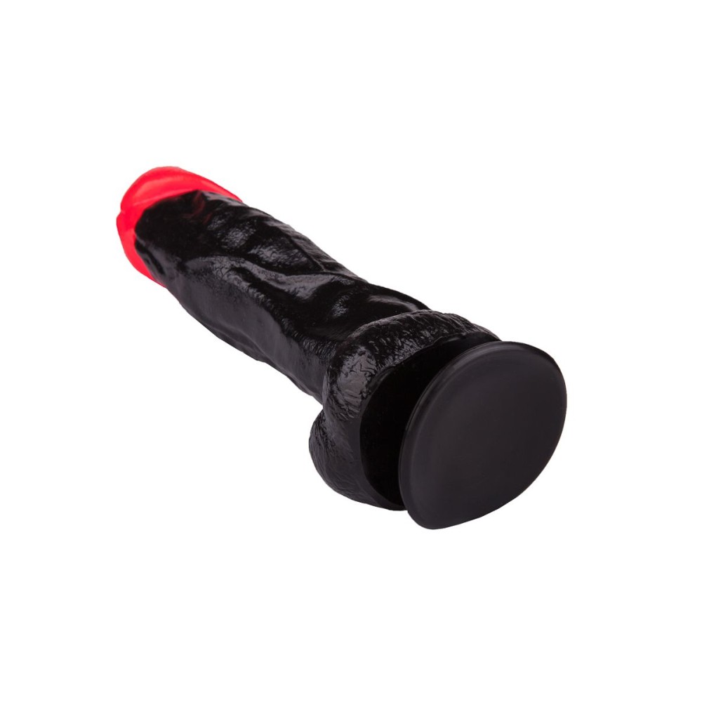 Чёрный фаллоимитатор с красной головкой - 20 см.