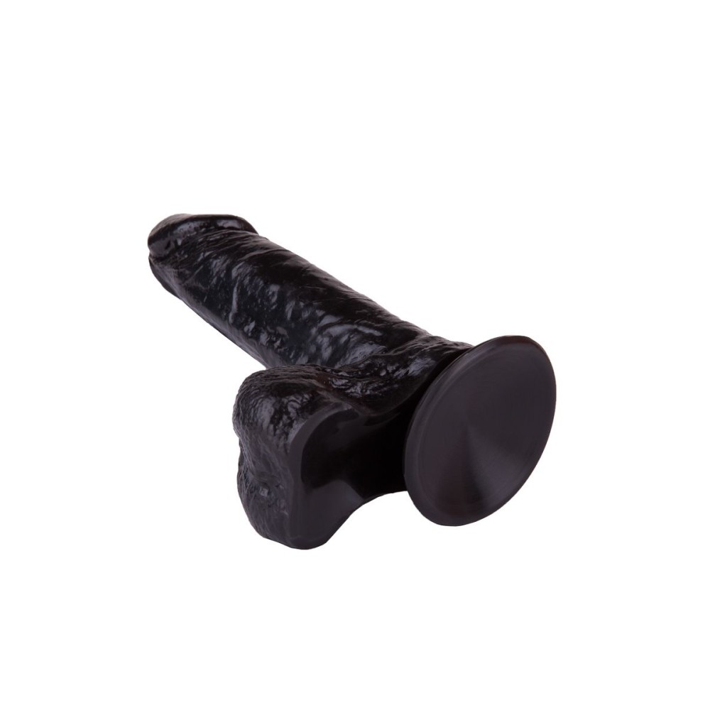 Чёрный фаллоимитатор с мошонкой на подошве-присоске - 16,5 см.