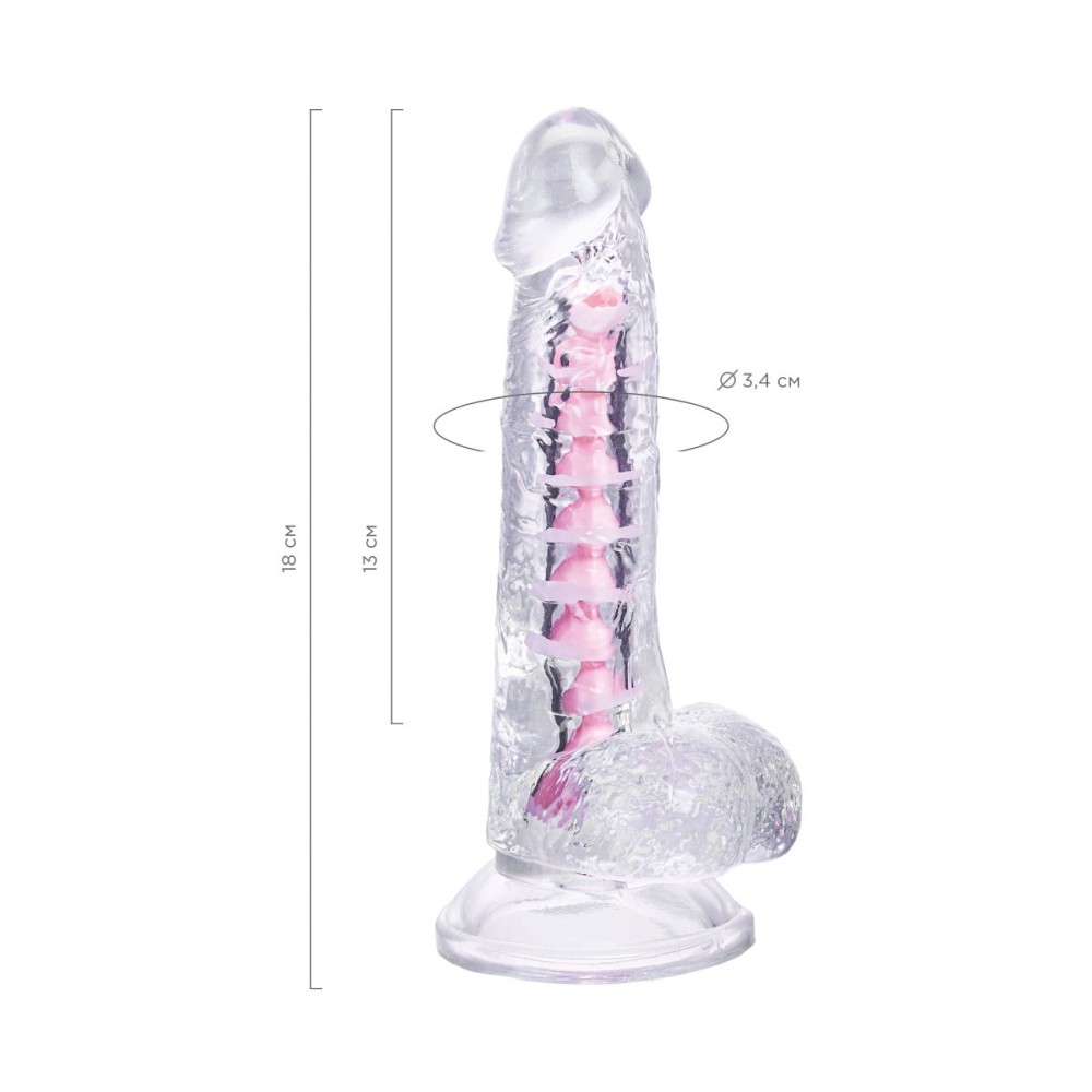 Диаметр 3.4 см оптимален для бережного раскрытия интимных зон, а достаточная длина 18 см позволяет экспериментировать с глубиной проникновения. Прозрачный дизайн добавляет эстетики интимным моментам и позволяет визуально контролировать процесс.