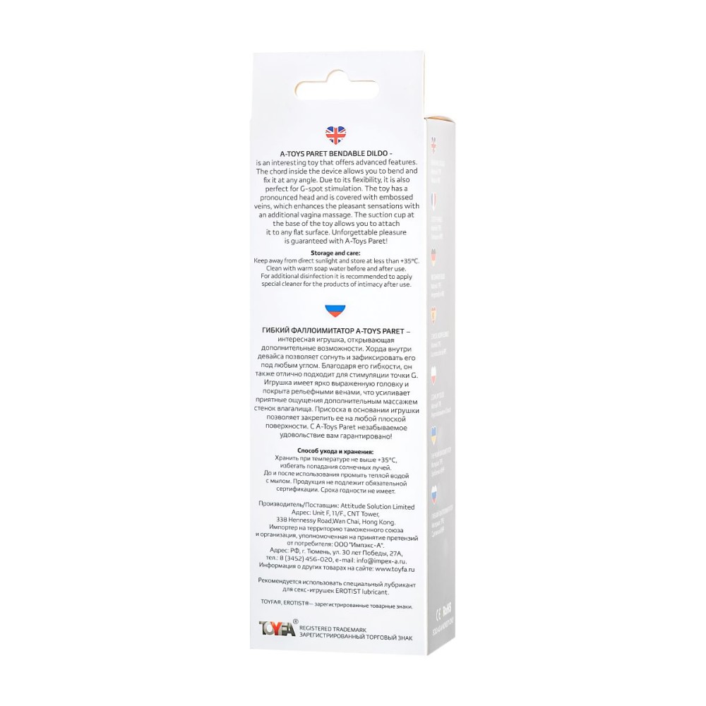 Картонная упаковка гарантирует конфиденциальность доставки и хранения. Материал легко очищается мыльным раствором или специальными средствами для ухода за секс-игрушками. Подходит для соло-практик и парных экспериментов.