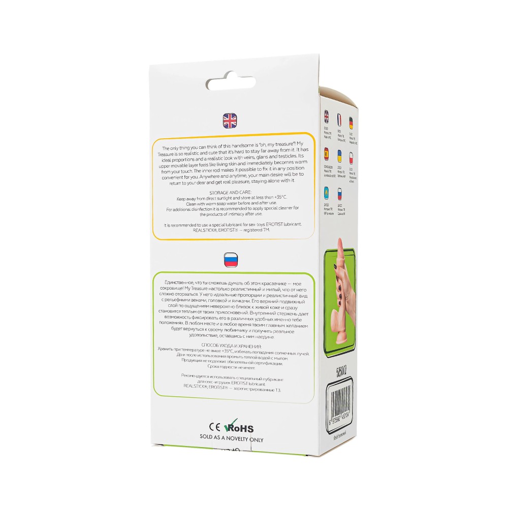 My Treasure создан для наслаждения им в любое время, в любом месте. Используйте его для вагинального или анального удовольствия, в ванной или душе. Но не забудьте воспользоваться презервативом, если хотите побаловать себя анальными ласками. Упругая мошонка с присоской служат надежным ограничителем Этот фаллоимитатор – не просто игрушка, это настоящее сокровище, готовое доставить вам бесценные мгновения удовольствия.