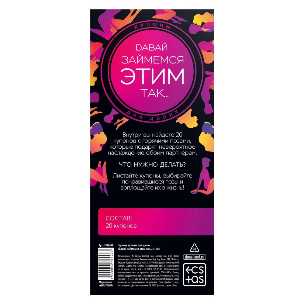 Идеально подходит для обоих партнеров, помогая открыть новые грани близости через увлекательную игру. Каждый купон предлагает интересную позу, превращая привычные моменты в незабываемые приключения.