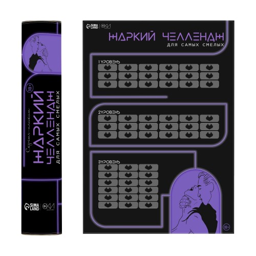 Раскройте новые грани близости с этим интригующим плакатом-челленджем! Специальный скретч-слой скрывает увлекательные задания и дерзкие вызовы, которые помогут разнообразить вашу интимную жизнь.