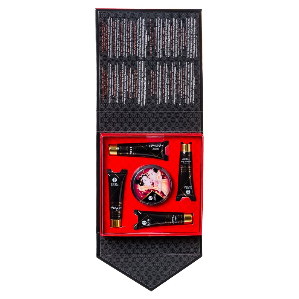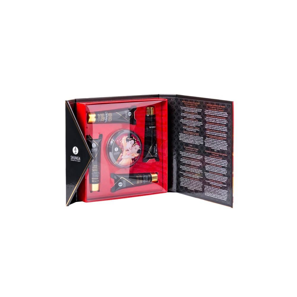 Набор включает средства для эротического массажа с функцией увлажнения — специальные лубриканты обеспечивают плавное скольжение и бережную заботу о чувствительных зонах. Упаковка из качественного картона делает комплект идеальным презентом для романтического вечера.
