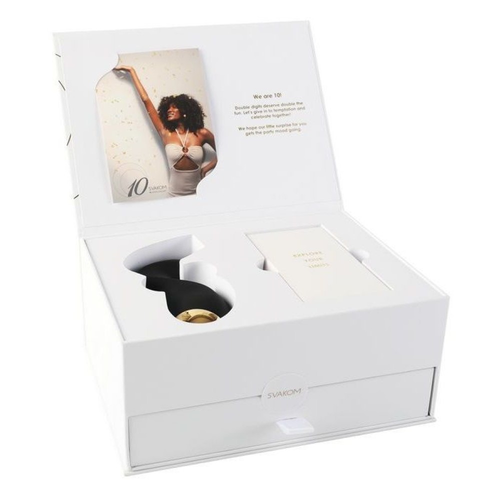 Подарочный набор Pulse Box подарит не один незабываемый вечер вдвоем. В подарочной коробочке вы найдете стимулятор клитора Svakom Pulse Pure, маску на глаза для сенсорной депривации, атласную повязку для фиксации, гипоаллергенный лубрикант Swiss Navy All Natural (59 мл), а также очищающий спрей для игрушек Swiss Navy Toy & Body Cleaner (30 мл).