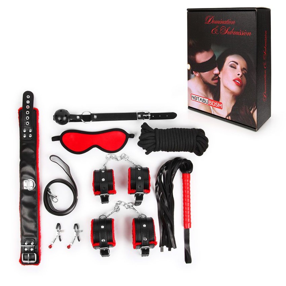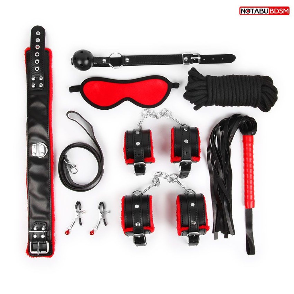 Набор предназначен для садомазохистских практик и расширения границ интимной жизни. Сочетание элегантного черного и страстного красного создает неповторимую атмосферу для смелых экспериментов. Каждый элемент продуман для комфортного и безопасного использования.