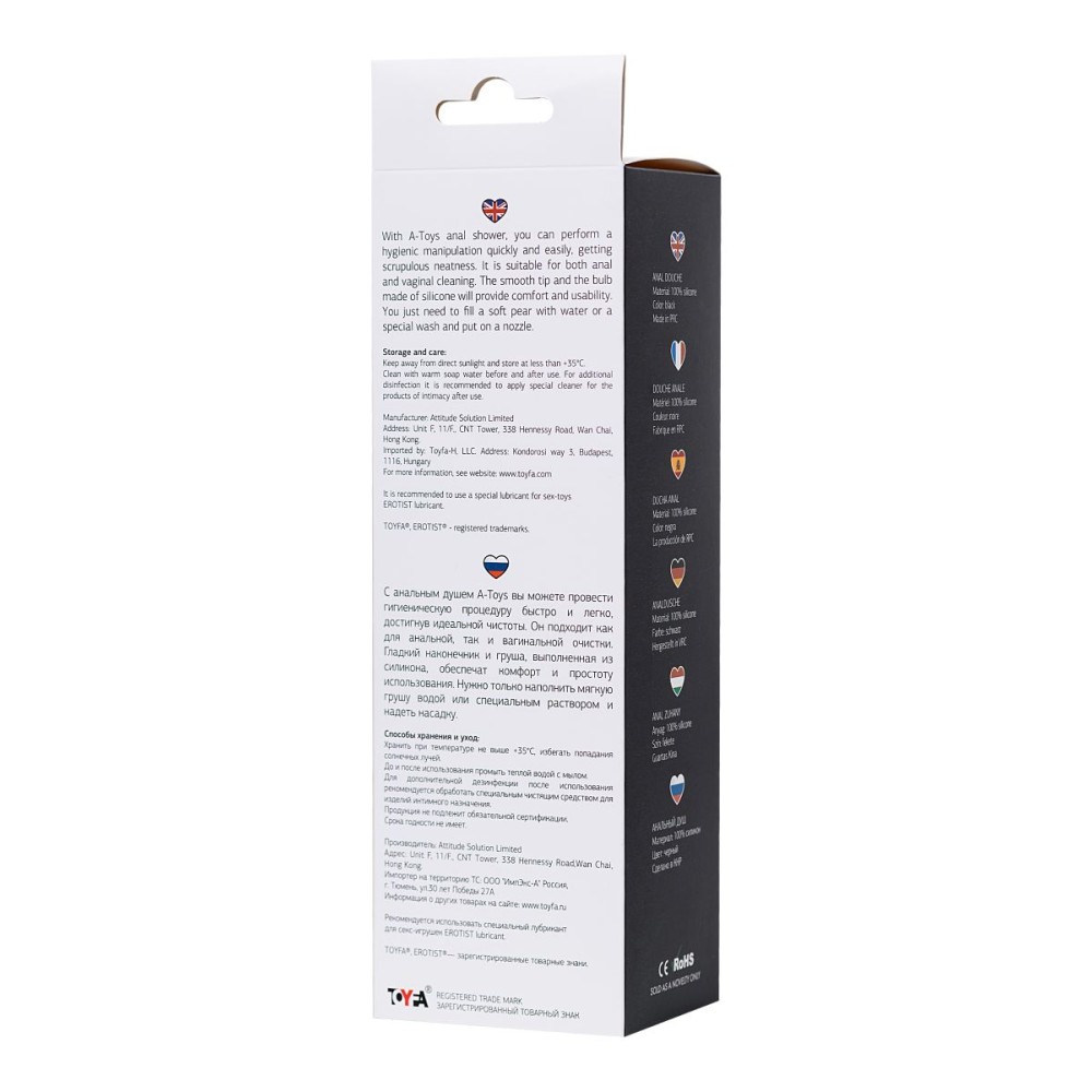 Идеален для подготовки к анальному сексу или сольным практикам. Мягкий материал легко дезинфицируется и не впитывает запахи. Эргономичная конструкция обеспечивает полный контроль во время использования. Превратите гигиенические процедуры в элемент sensual-ритуала с этим стильным аксессуаром.