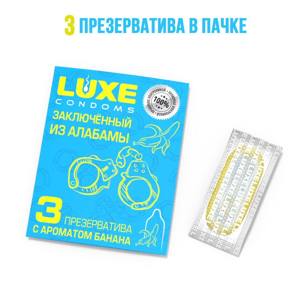 Презервативы «Заключённый из Алабамы» с экзотическим ароматом банана — это смелое сочетание юмора и качества. В каждой картонной коробке коллекции Luxe вы найдёте 3 презерватива из высококачественного латекса длиной 18 см, подходящих для обоих партнёров. Идеальный дополнительный аксессуар для экспериментов, который добавит игривости в вашу интимную жизнь. Бренд и производство — Китай.