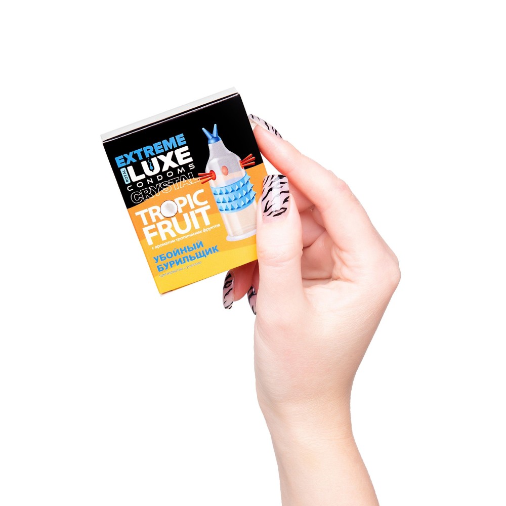 Стимулирующий презерватив «Убойный бурильщик» с ароматом тропических фруктов — это эксклюзивный продукт из коллекции Luxe Extreme, созданный для усиления ощущений и придания интимным моментам особой страсти. Изготовленный из высококачественного латекса, он обеспечивает надежную защиту и комфорт, а его уникальная текстурированная поверхность с интенсивными стимулирующими элементами гарантирует незабываемые впечатления для обоих партнеров. Аромат тропических фруктов добавляет нотку свежести и чувственности, превращая каждый контакт в яркое приключение. Длина изделия составляет 18 см, что подходит для большинства пользователей. Поставляется в элегантной картонной упаковке, объем — 1 шт. Идеально подходит как дополнительный аксессуар для разнообразия интимной жизни. Бренд и производство — Китай, что гарантирует соответствие международным стандартам качества.
