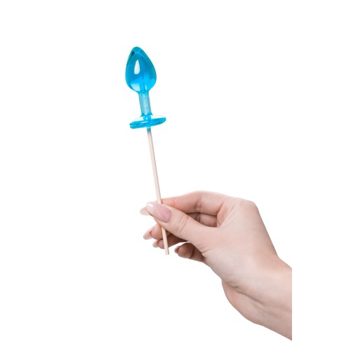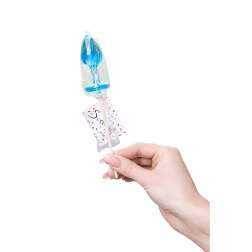 Голубой леденец в форме анальной пробки со вкусом блю кюрасао - 29 гр.