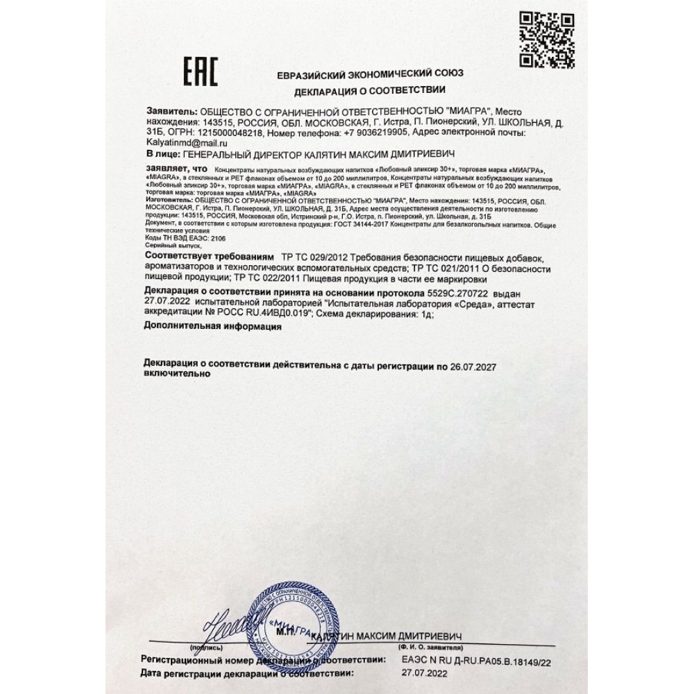 | Инструкция по применению | 10-15 капель растворить в жидкости за 10-20 минут до секса. |