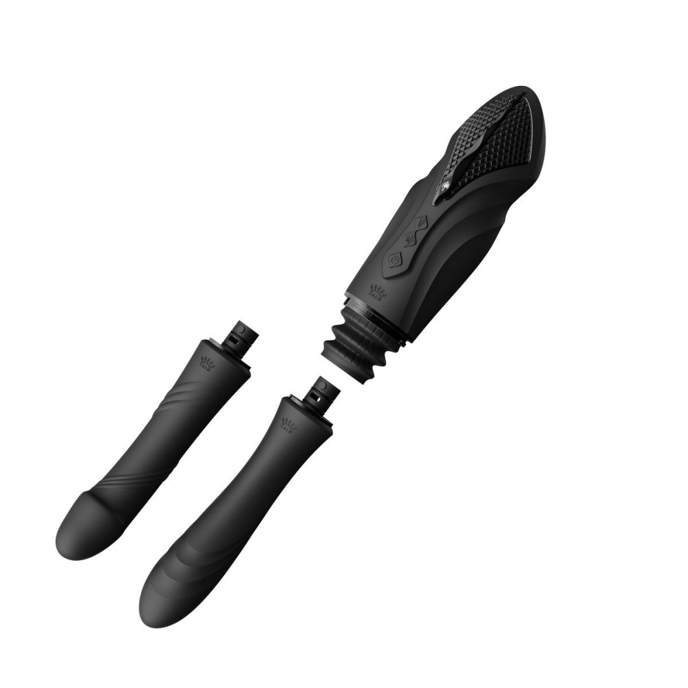 Черная секс-машина с функцией нагрева, насадками и присоской Sesh