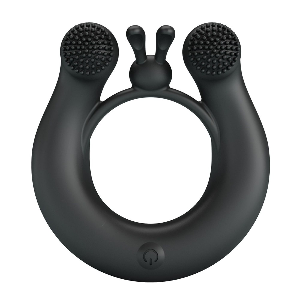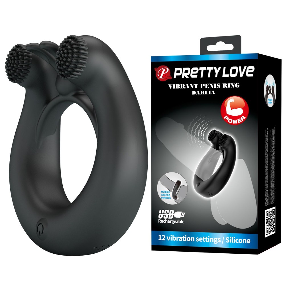 Черное эрекционное кольцо Dahlia с 2 стимулирующими щеточками — инновационная вибрирующая игрушка для мужчин от коллекции Pretty Love. Элегантное кольцо из качественного силикона длиной 7,6 см обеспечивает мощное усиление эрекции и продление полового акта. Двойные вибрирующие щеточки создают интенсивную стимуляцию клитора партнерши, превращая каждую близость в незабываемое удовольствие для обоих. Встроенный аккумулятор избавляет от необходимости замены батареек, а компактная картонная упаковка делает товар идеальным подарком. Произведено в Китае с гарантией качества и безопасностью материалов.