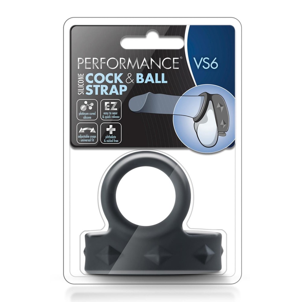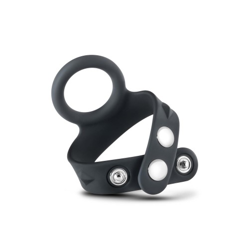 Черное эрекционное кольцо с подхватом мошонки на кнопках VS6