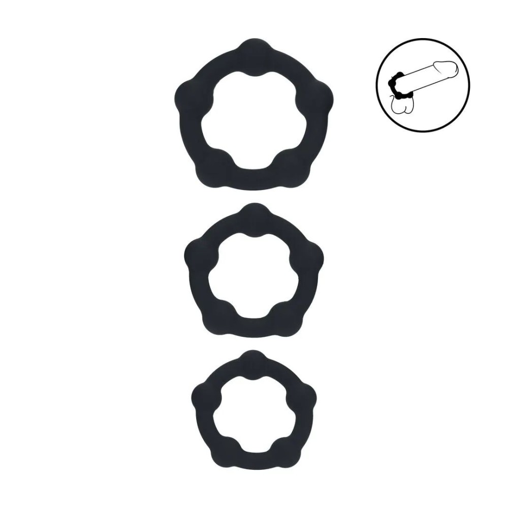 - Тройной эффект: Набор включает три кольца разного дизайна с текстурными бусинами. Каждое кольцо предлагает уникальный тип стимуляции для вас и вашего партнера, позволяя экспериментировать и находить идеальные ощущения.