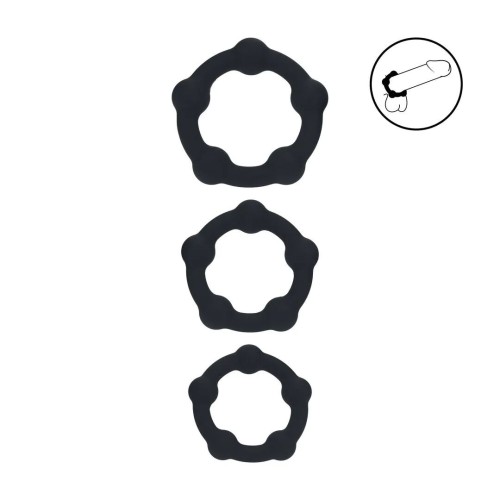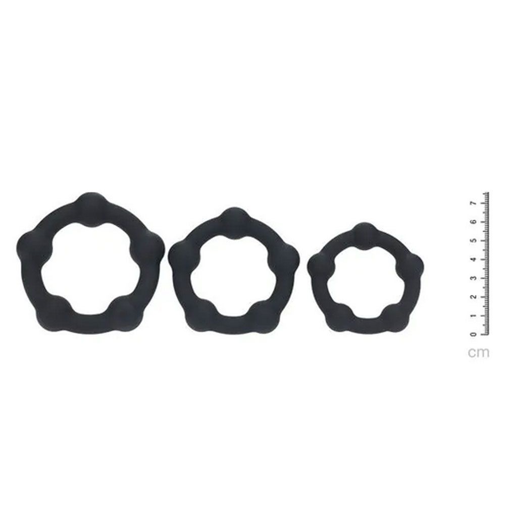Три эрекционных кольца из силикона с различным расположением и размером бусин для разнообразия ощущений.