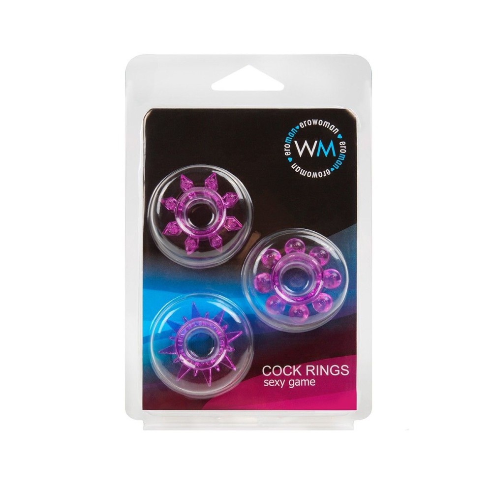 Откройте новые грани наслаждения с этим уникальным набором эрекционных колец от коллекции EROWOMAN-EROMAN. Три лиловых кольца разной формы специально разработаны для усиления мужских ощущений и продления интимной близости.