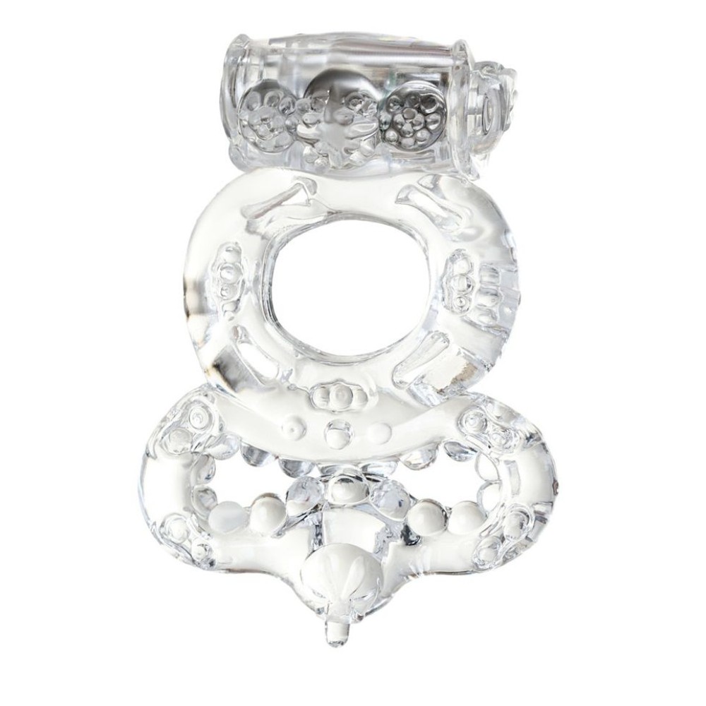 Прозрачное эрекционное кольцо с вибратором и подхватом