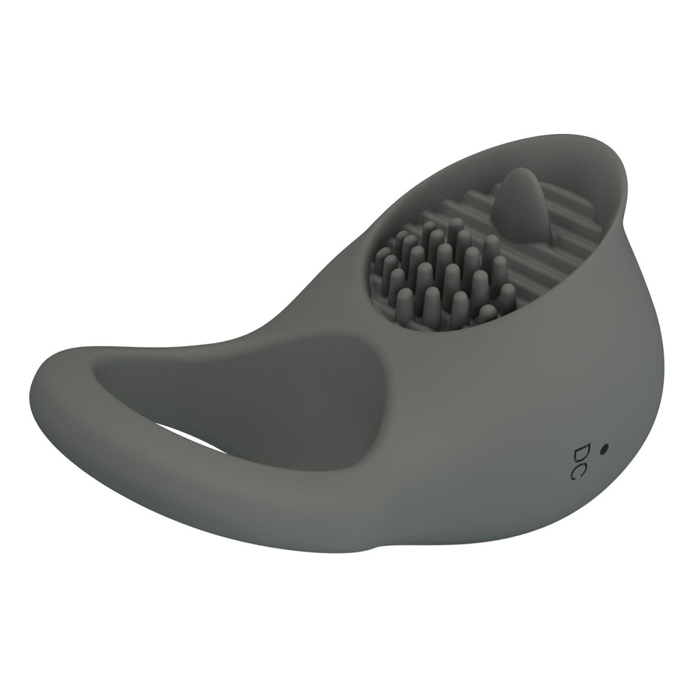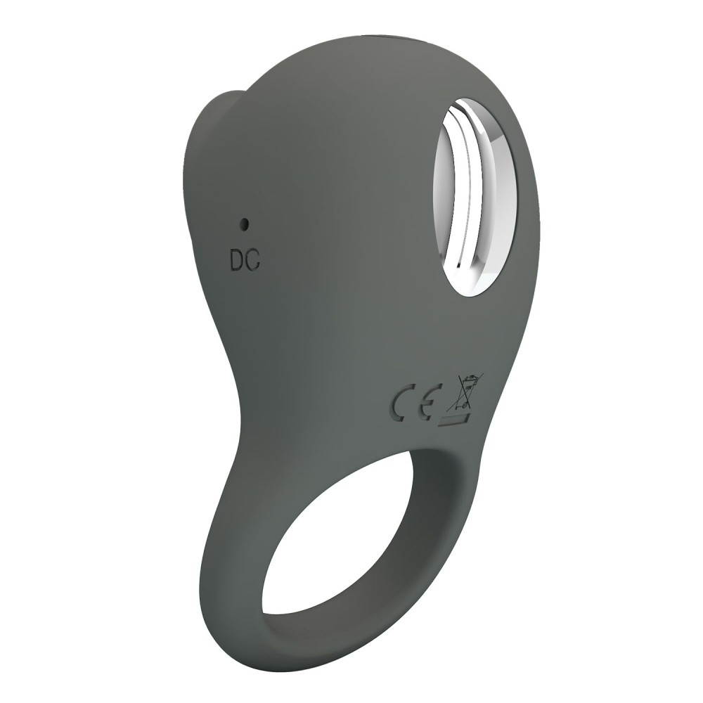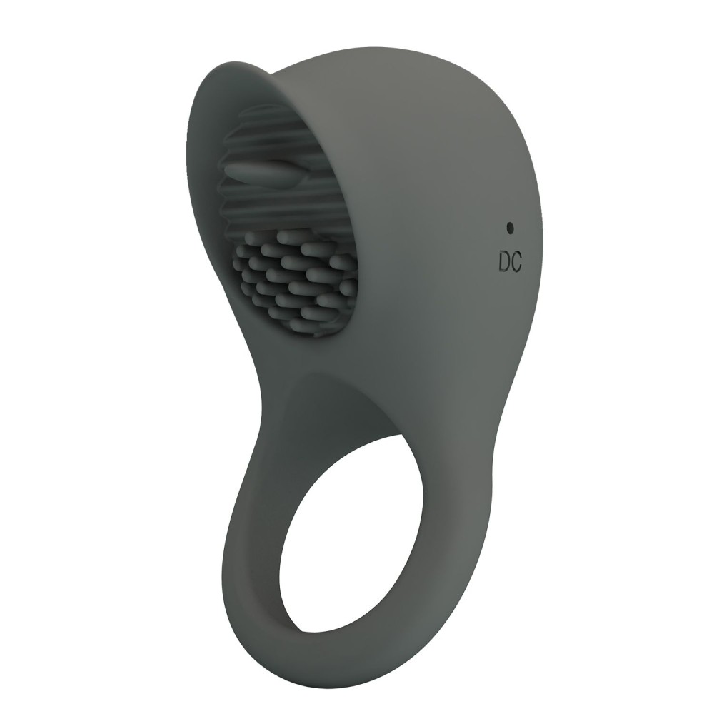 Серое эрекционное виброкольцо со стимуляцией клитора