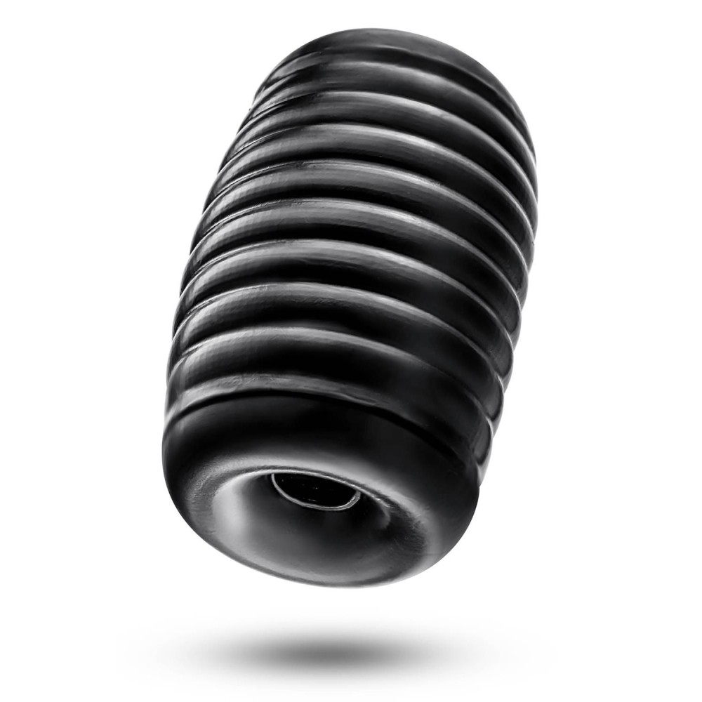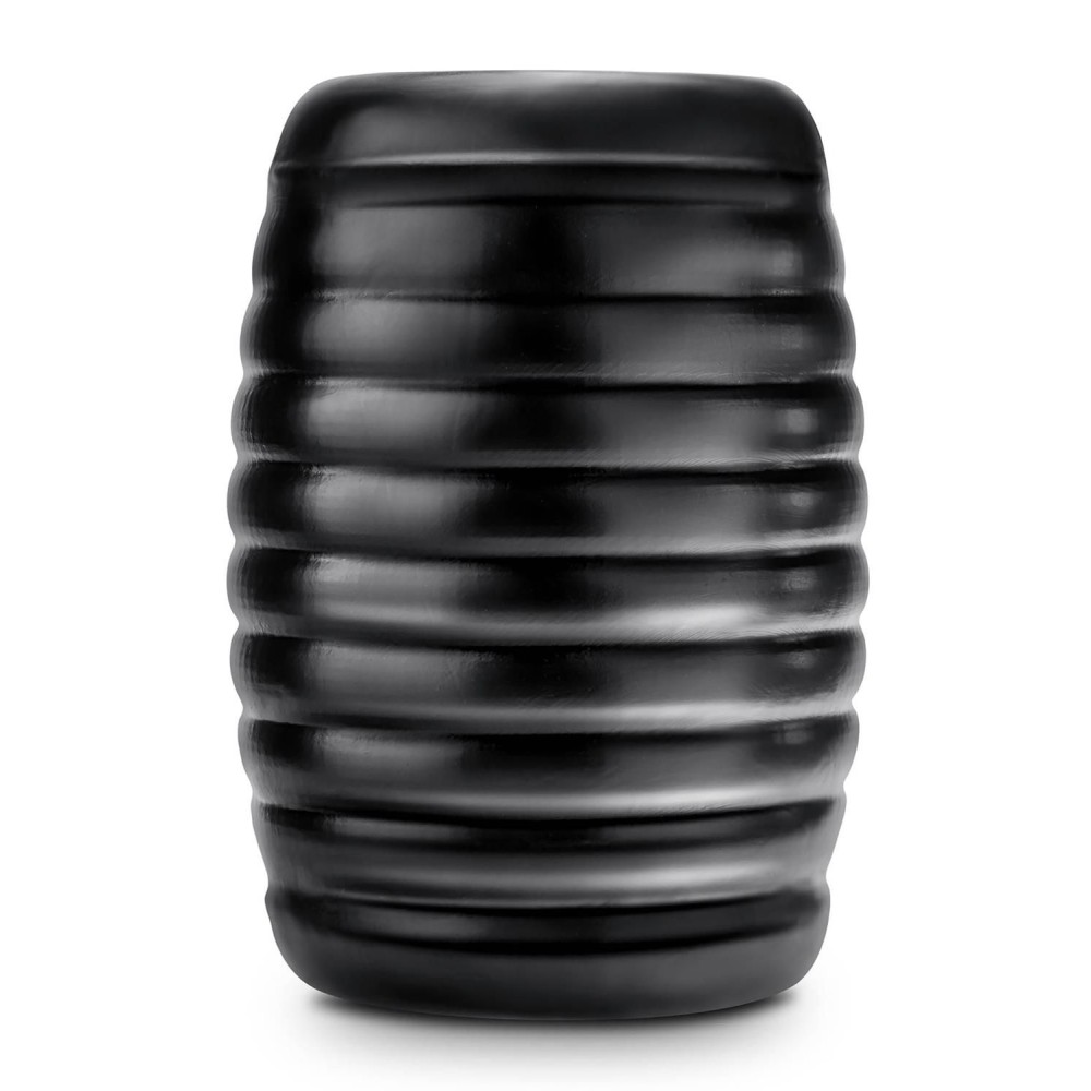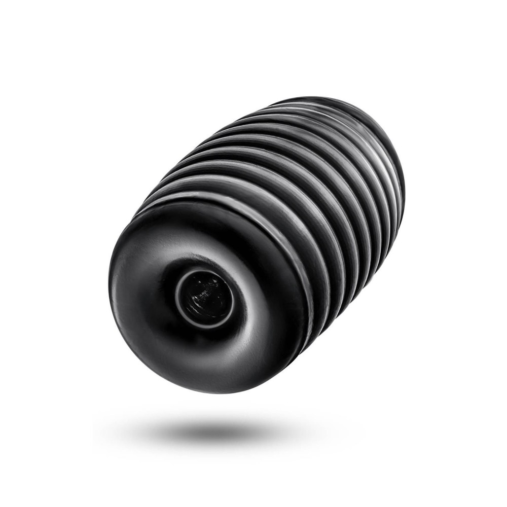Черный мастурбатор Grasp. Сквозной, с ребрышками на поверхности.