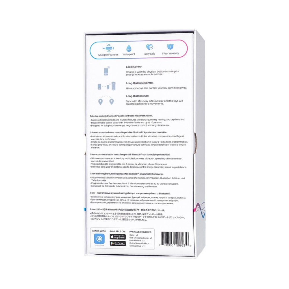 Упаковка — стильная картонная коробка, удобная для хранения. Бренд из Китая гарантирует современные технологии производства. Погрузитесь в мир ярких ощущений с перезаряжаемым мастурбатором Calor!