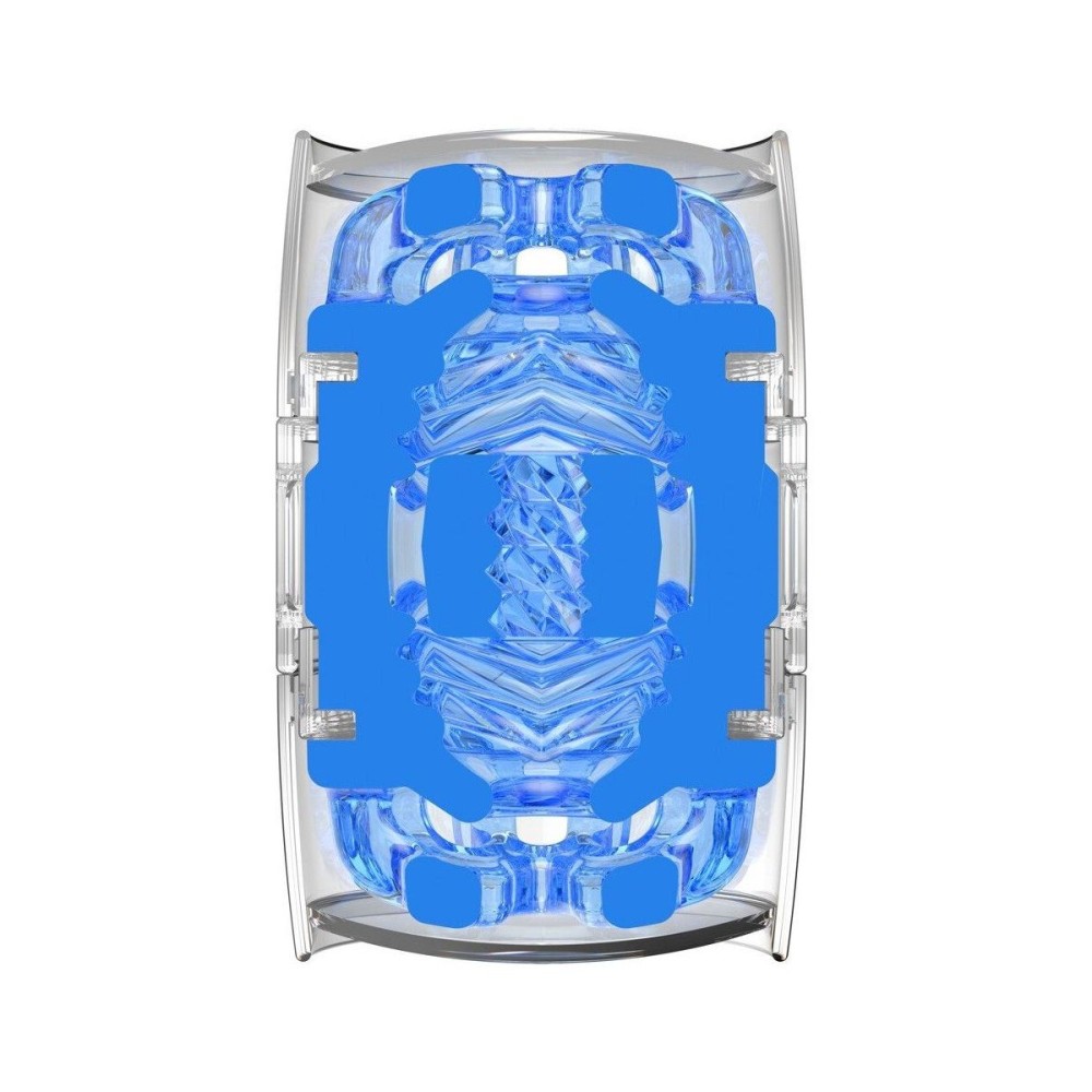 Особенность модели — прозрачный корпус Blue Ice, сквозь который видна уникальная внутренняя текстура с тройной стимуляцией. Открытая конструкция Quickshot позволяет одновременно воздействовать на эрогенные зоны и наблюдать за процессом, усиливая визуальное возбуждение.