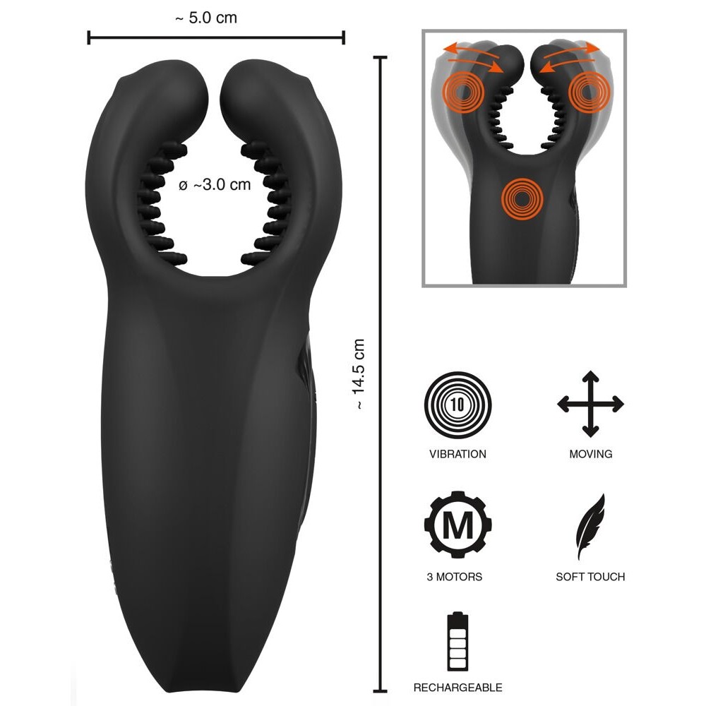 Мастурбатор с массажными виброкрыльями. Комфортный хэндджоб для пениса или мошонки. Подвижные крылышки двигаются вперед-назад, 3 мощных, тихих моторчика, 10 режимов движения, 10 режимов вибрации. Простое управление. Шелковистый мягкий силикон. Перезаряжаемый - в комплекте USB-кабель. Ширина - 5 см.