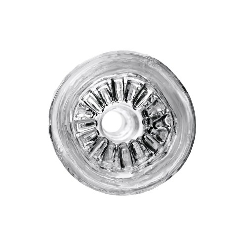 2. Сначала введите головку члена в отделение массажера с ресничками. Легкими вращающими движениями помассируйте только головку.