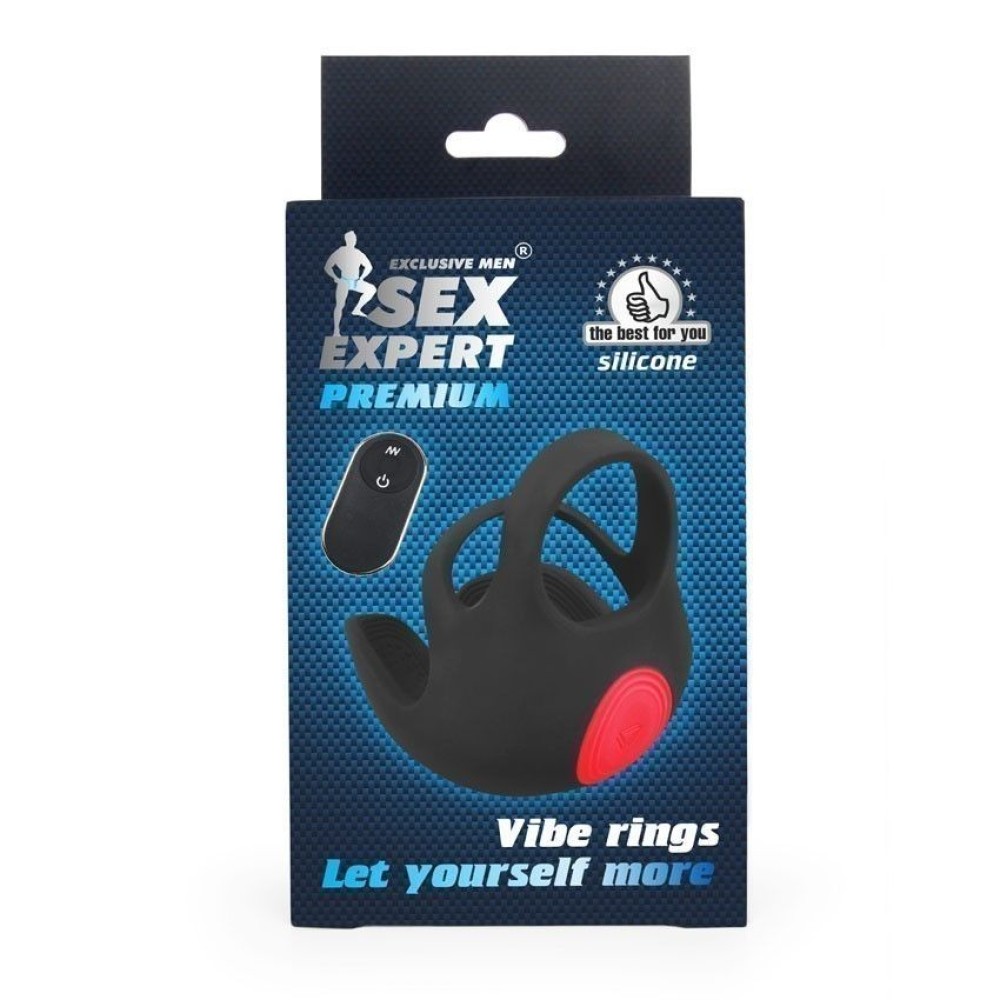 Черная вибронасадка на пенис и мошонку Sex Expert — инновационная мужская игрушка премиум-класса, созданная для усиления эрекции и новых ощущений во время интимной близости.