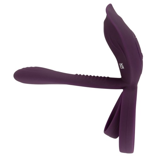 Сочетает в себе кольцо для пениса и мошонки с очень гибким вибратором и клиторальным стимулятором. Кольца надеваются на пенис и яички так, чтобы плоский вибратор со стимулирующей текстурой находился на пенисе. Это увеличивает окружность пениса, и оба получают удовольствие от насыщенных вибраций во время секса. Кроме того, кольцо для пениса поддерживает его эрекцию в течение длительного времени благодаря эффекту застоя крови, кольцо для яичек обеспечивает прочную и надежную фиксацию, а волнистый клиторальный стимулятор дополнительно ласкает ее горячую точку. Мощный моторчик обеспечивает 10 режимов вибрации, которыми можно удобно управлять одним нажатием кнопки (+/-) непосредственно на игрушке или с помощью практичного пульта дистанционного управления. Рабочая длина - 9,5 см.