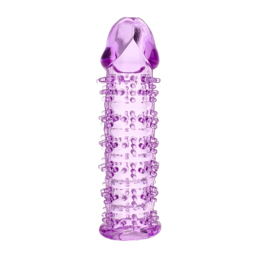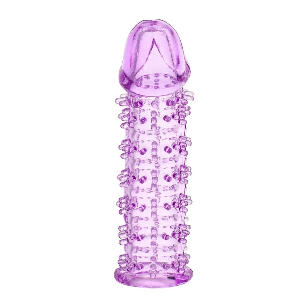 Гелевая фиолетовая насадка на фаллос с шипами - 12 см.