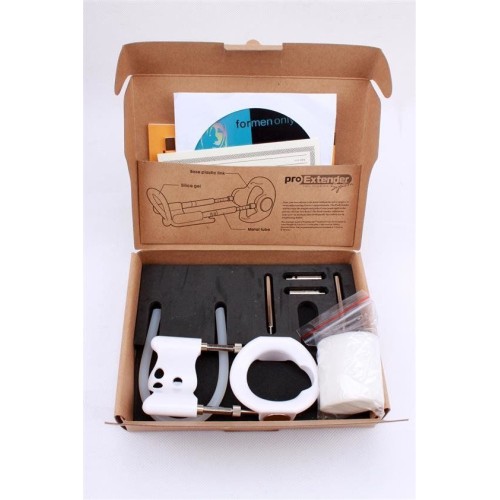 Экстендер для увеличения пениса. В комплект входит: экстендер с пружинными штангами (увеличение пениса до 20 см), удлиняющие стержни, гибридная насадка, силиконовый жгут-фиксатор, смягчающая прокладка, упорное кольцо с пружинным механизмом, DVD-инструкция.