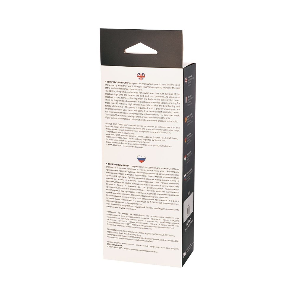 • Функции: вакуумный массаж, усиление эрекции, вибрация