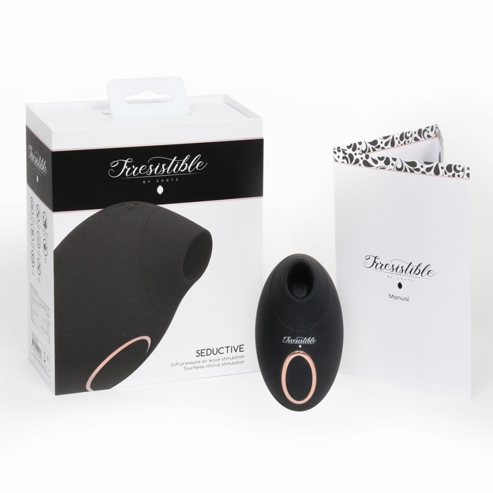 Черный клиторальный вакуум-волновой массажер Irresistible Seductive — инновационная силиконовая стимуляция для женщин. Голландское качество в элегантном дизайне длиной 8.8 см с встроенным аккумулятором. Уникальная вакуумная технология создает волновые пульсации для интенсивного возбуждения клитора. Упакован в премиальную картонную коробку — идеальный подарок для исследования новых ощущений.