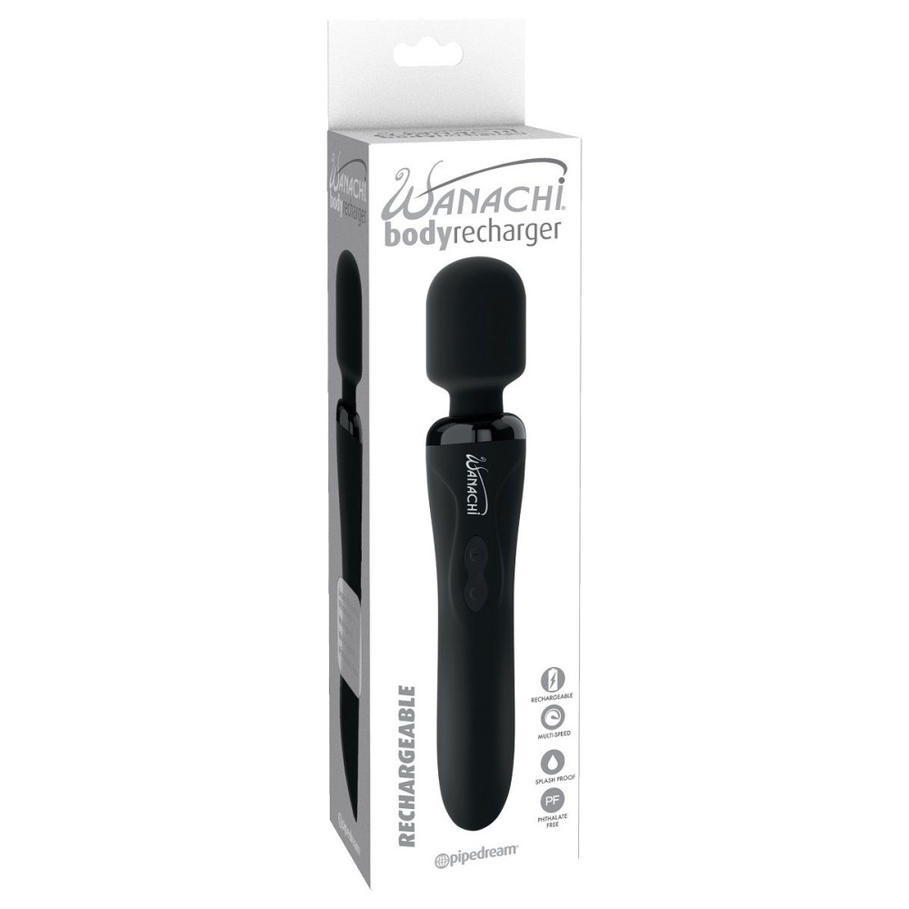 Чёрный вибратор-жезл Body Recharger. Силиконовая головка подарит чувственный массаж тела или некоторых эрогенных зон.