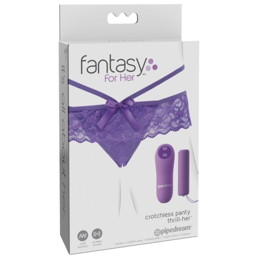 Фиолетовые трусики с вибропулей и пультом Crotchless Panty Thrill-Her