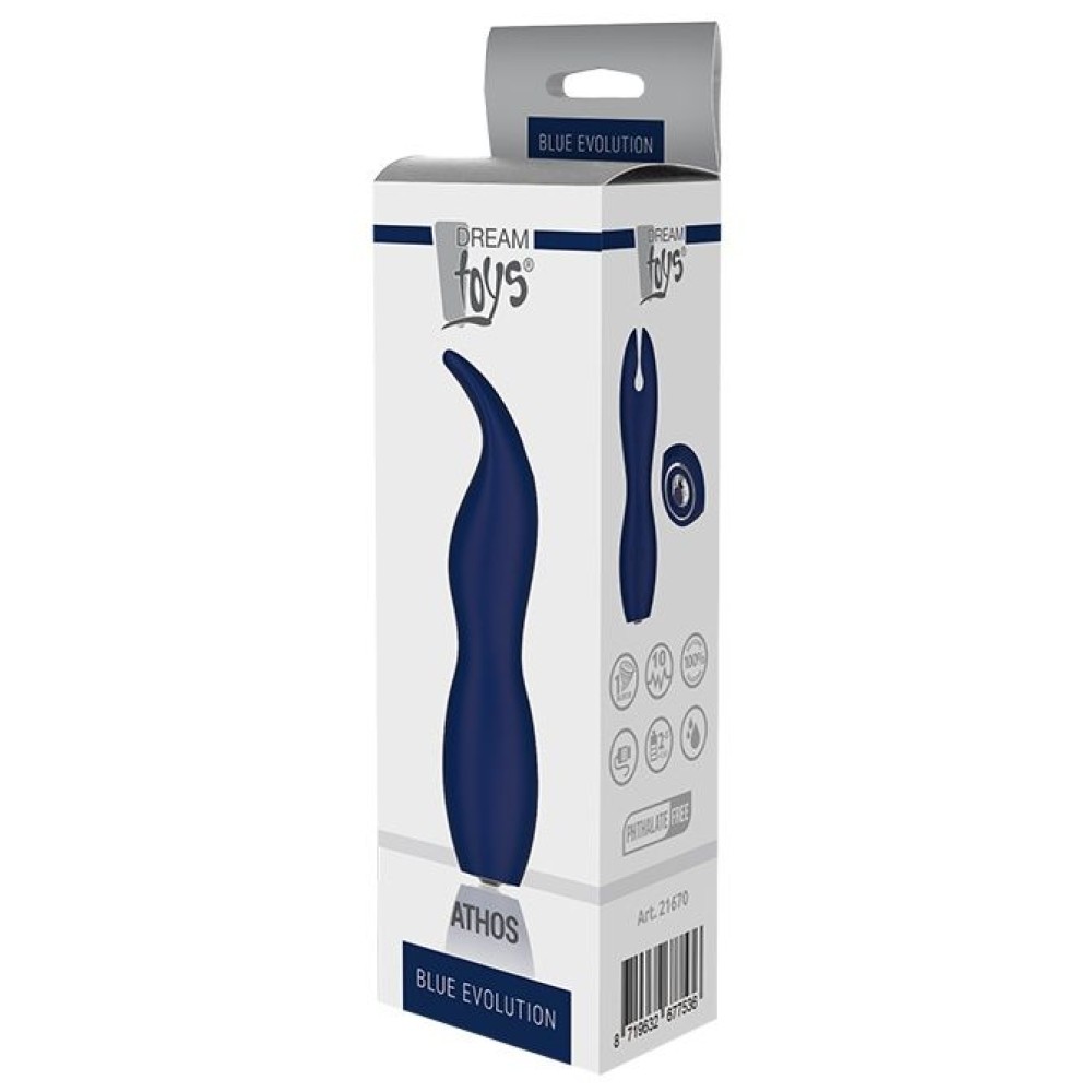 Athos - это водонепроницаемый стимулятор, изготовленный из безопасного для тела силикона. Он имеет гладкую форму с гибким наконечником, который можно использовать для стимуляции эрогенных зон, а также для стимуляции клитора или сосков. Мотор имеет 3 уровня вибрации и 7 различных режимов.