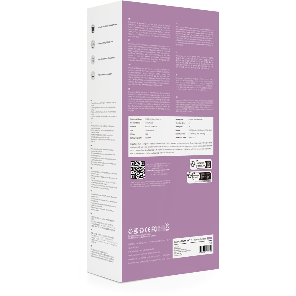 Emma Neo 2 поставляется в элегантной картонной коробке, что делает его отличным подарком для особенных моментов. Производство осуществляется в США под контролем китайского бренда, что гарантирует высокое качество и надежность. Длина устройства 29 см и диаметр 6 см обеспечивают удобство использования и эффективность во время сеансов релаксации.