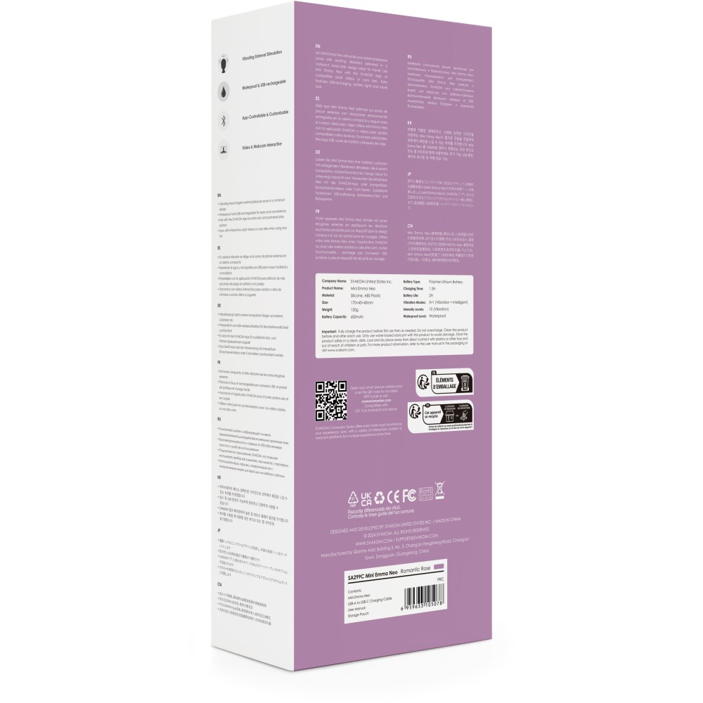 Продукт произведен в США под контролем китайского бренда, что сочетает инновационные технологии и доступность. Упаковка из качественного картона делает его отличным вариантом для подарка. Погрузитесь в мир насыщенных ощущений с Mini Emma Neo — вашим личным проводником к яркому удовольствию.