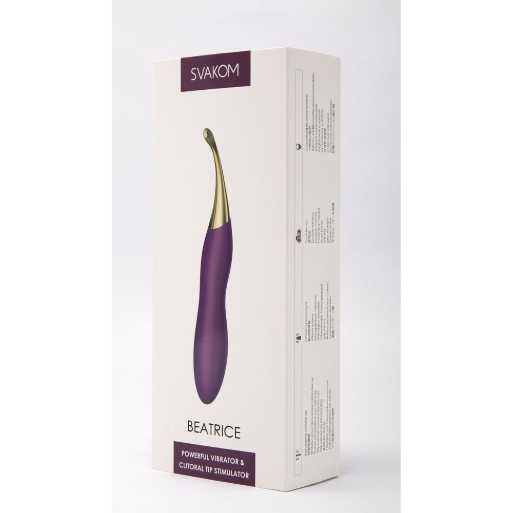Точечный стимулятор клитора Beatrice — инновационная вибрационная система для интенсивного воздействия на эрогенные зоны. Устройство оснащено встроенным аккумулятором и 5 сменными силиконовыми насадками разной текстуры для персонализированных ощущений. Технология пульсирующей вибрации обеспечивает точечную стимуляцию клитора, а функция эротического массажа подходит для исследования других чувствительных областей. Выполнен из гипоаллергенного силикона премиум-класса, поставляется в дизайнерской картонной упаковке. Идеально подходит для сольных практик и парных экспериментов. Длина 20.9 см гарантирует удобное использование.