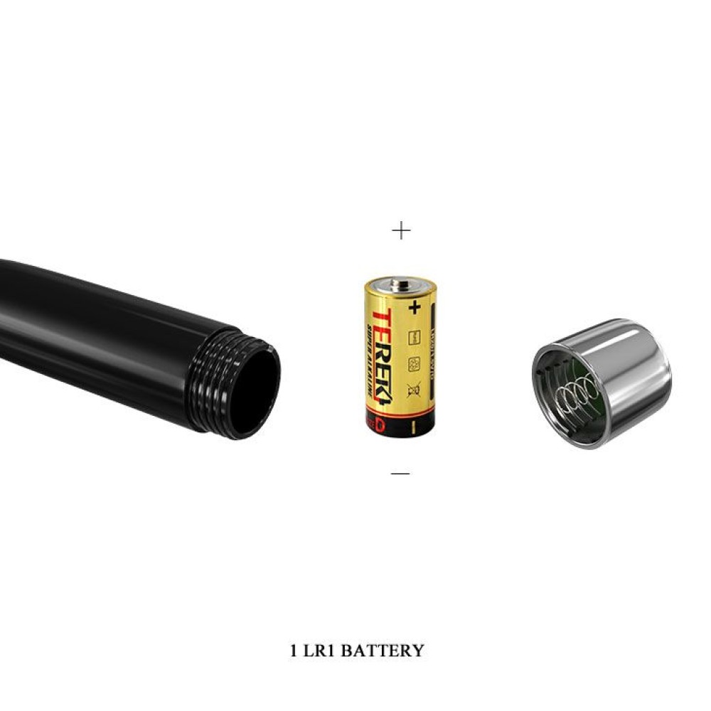 Материал из термопластичной резины (TPR) мягкий, гипоаллергенный и простой в уходе, обеспечивая комфорт и безопасность. Устройство работает от 1 батарейки типа LR1, что делает его портативным и удобным для использования в любом месте. Длина вибратора составляет 21 см, что позволяет легко управлять им и достигать желаемых зон.
