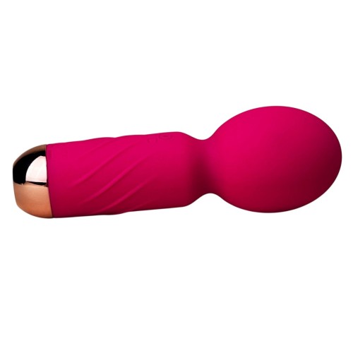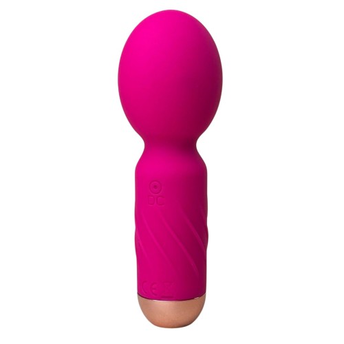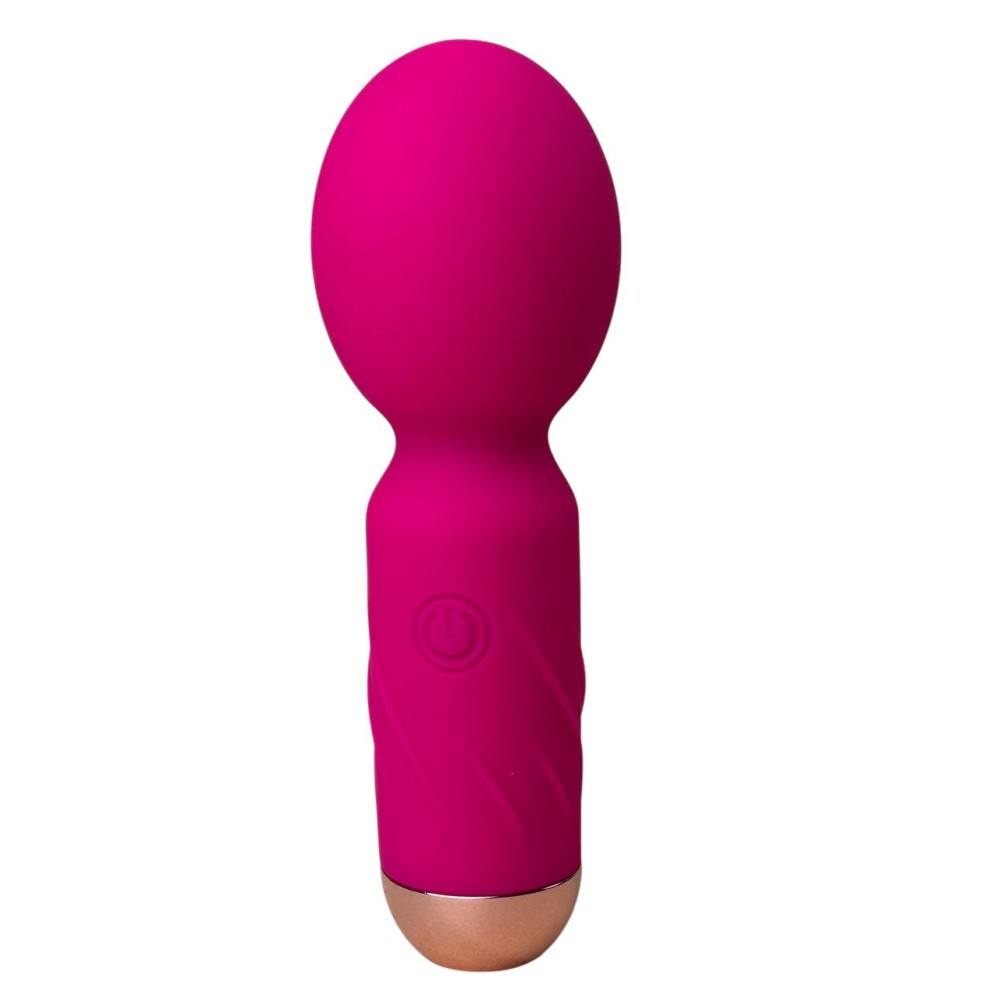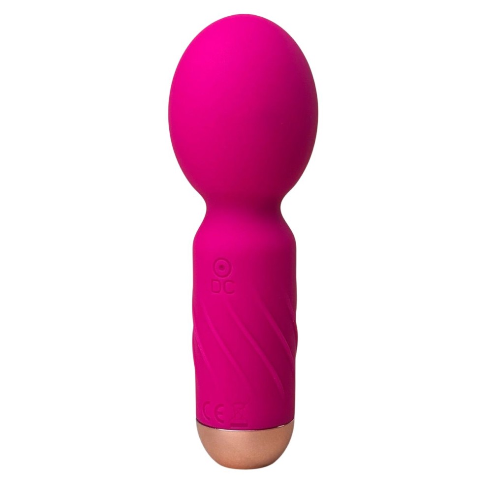 Ярко-розовый мини-wand вибратор для стимуляции эрогенных зон. Имеет 10 режимов вибрации.