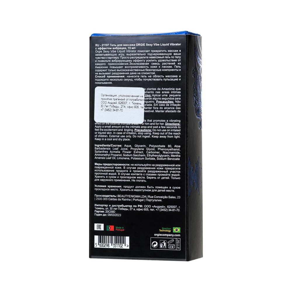 Упакован в стильную картонную коробку, что делает его отличным подарком. Используйте для массажа эрогенных зон, подготовки к интимной близости или как дополнение к сексуальным играм. Подарите себе и партнеру новые грани наслаждения с вибрирующим гелем ORGIE Sexy Vibe!